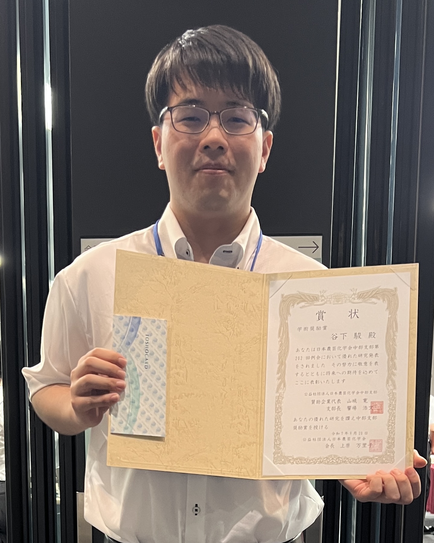 2025/09/20 農芸化学会中部支部でM1谷下が受賞